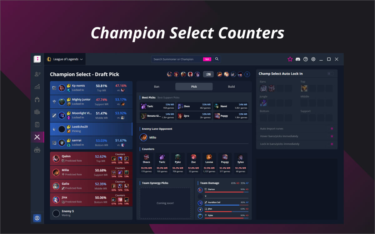 Get an edge over the competition with our platform offering real-time matchmaking insights, champion build recommendations, and summoner spell notifications, designed to keep you consistently ahead in the game.