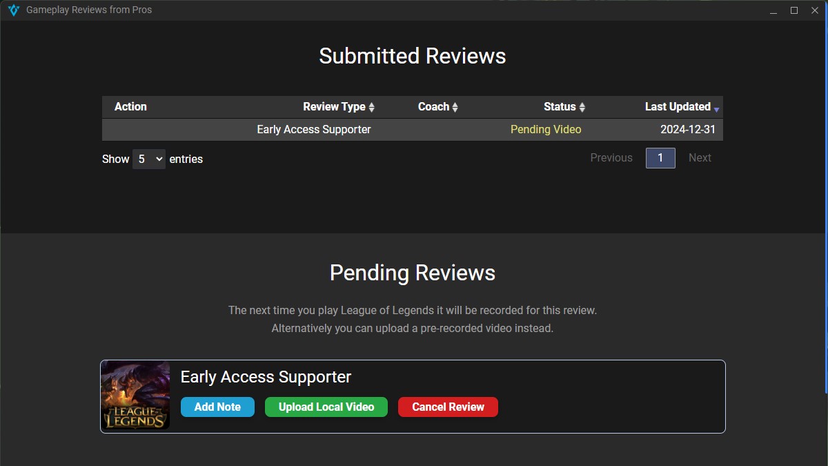 During early access, we are giving away 100 completely FREE reviews for League of Legends! Simply download the app and play a game in ranked solo queue or ranked flex. If you already have a previous game recorded, you can upload it through the app instead!